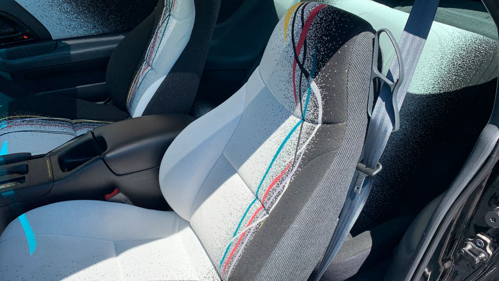 While that’s certainly not a lot of power by today’s standards, the V-8 engine was impressive in its era. The car has an automatic transmission, power steering, and power brakes. It also has AC along with power windows and locks. The most noticeable features are the unique Pace Car black-and-white paint scheme with colored stripes that carries over to the cloth interior.