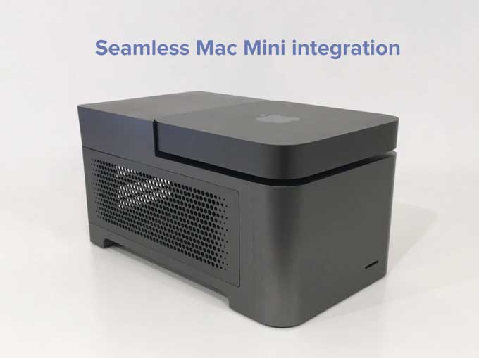 The device is a docking station that gives the Mac Mini user access to extra graphics cards and SSD drives. The device adds a pair of PCIe expansion slots that will function with all compatible graphics cars that are supported by the Catalina macOS reports Newsshooter.