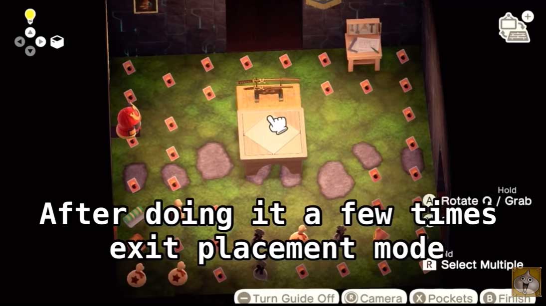 Those taking advantage of the glitch can then open item placement mode by pushing the down arrow on the controller, select the smaller table, and move the table to the next side of the larger table without rotating it. Then drop the item slightly overlapping the table while perpendicular, and it will rotate once it’s placed.