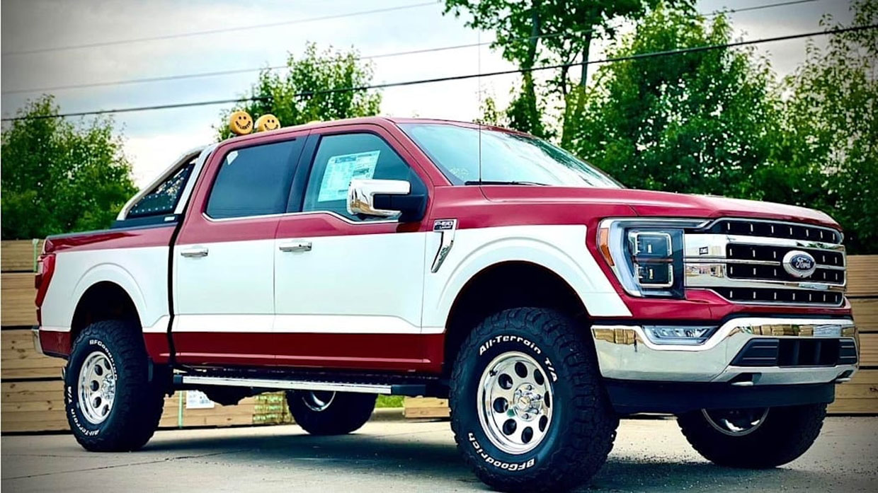 One of the most iconic hallmarks of the Ford F-150 pickup line during the 1980s was a wide range of two-tone body colors. It seemed like every other F-150 of an 80s vintage was red with white two-tone. Modern F-150 trucks are always single colors on the outside, but a dealership from Cincinnati can change that for you.