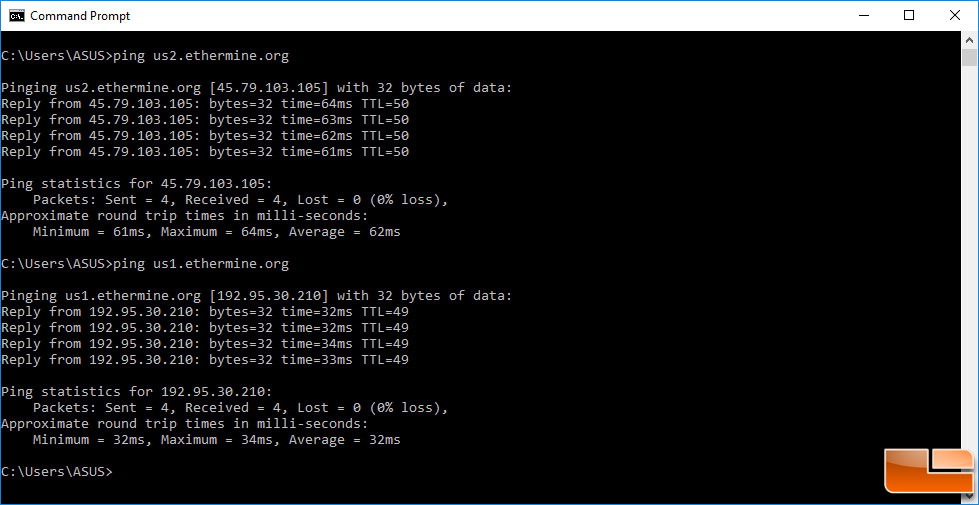 We are still using Claymore’s Dual Ethereum AMD+NVIDIA GPU Miner v10.0 (download here) and the Ethermine Ethereum Mining Pool (check it out here) with solid success. Since our original articles we’ve gone back and picked what Ethermine servers we connect to in the bat file based on ping times now. We are based in Missouri and discovered we get 32ms ping times to the East coast Ethermine servers versus 62ms ping times to the West coast servers. This simple server switch has decreased the number of stale shares we’ve gotten and that helps the bottom line. Our video cards are all overclocked and undervolted as much as we can get away with and Windows 10 has been tweaked to ensure solid 24/7 use.