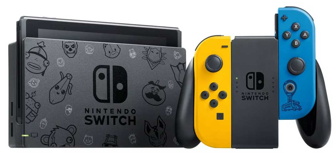 Nintendo is launching a new Fortnite-themed Switch console next month in Europe. The special bundle will ship with yellow and blue Joy-Con controllers. The blue controller has a Battle Bus etched around the home button.