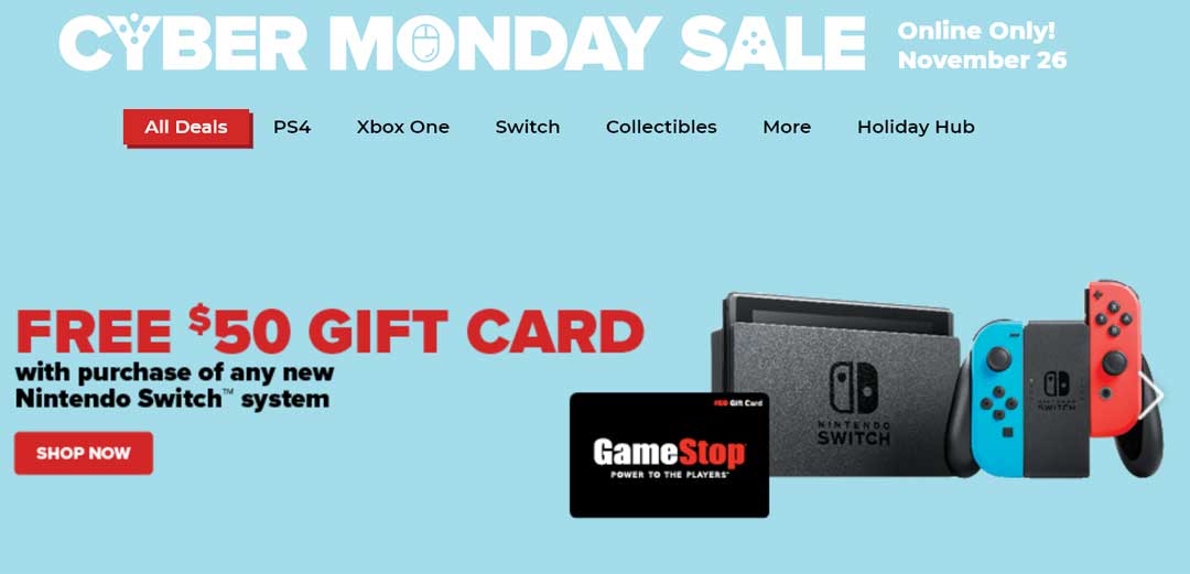 Black Friday has come and gone, and if you didn’t get all the shopping done that you hoped to complete there is still time with the Cyber Monday sale underway at GameStop. The game retailer is offering up to 65% off some games and is giving a $50 gift card with the purchase of any Switch console.