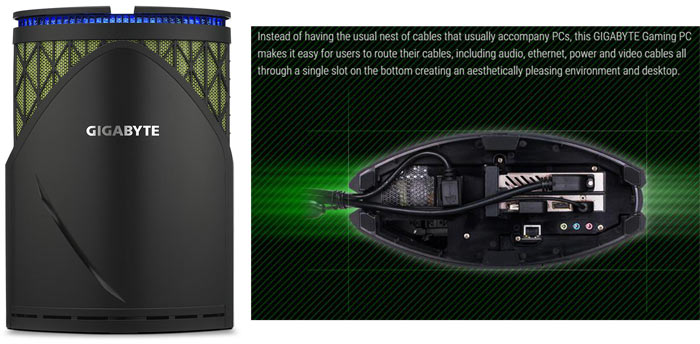 Gigabyte reveals a new BRIX line of compact PCs for gaming. The new Gigabyte BRIX Gaming GT PCs remain compact in design while separating from the Intel NUC designed models. The oval shaped chase measures at 276 x 384 x 128 mm and is sufficient to hold high performing components. Furthermore, the new Gigabyte BRIX Gaming GT PC contains the Intel Core i7-6700K ‘Skylake’ processor and an option of either NVIDIA GeForce GTX 1070 or 1080 G1 video card. Details of the new BRIX Gaming GT PC have been revealed by Guru3D here. The latest model of BRIX Gaming GT PC is larger than former model to allow a more powerful build. Hopefully Gigabyte was using the Intel Core i7-6700K since the Core i7-7700K “Kaby Lake” processors aren’t officially going to be announced until Q1 2017.