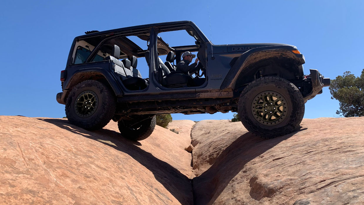 When fitted with the package, the Wrangler has best-in-class approach angle, departure angle, ground clearance, and water fording capability. The package is available on the Wrangler Rubicon Unlimited 3.6-liter automatic with eTorque and the Wrangler Rubicon 392.