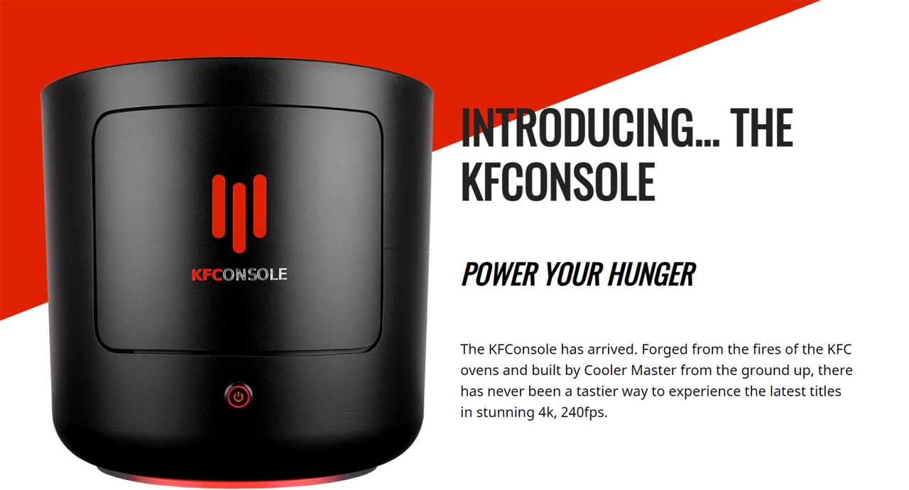 Pretty much everyone is familiar with Kentucky Fried Chicken, or KFC, the restaurant famous for its founder as much as it is for chicken. KFC and Cooler Master have teamed up to build the KFConsole, and it’s as weird as it sounds. The console promises to play video games and keep your chicken warm.