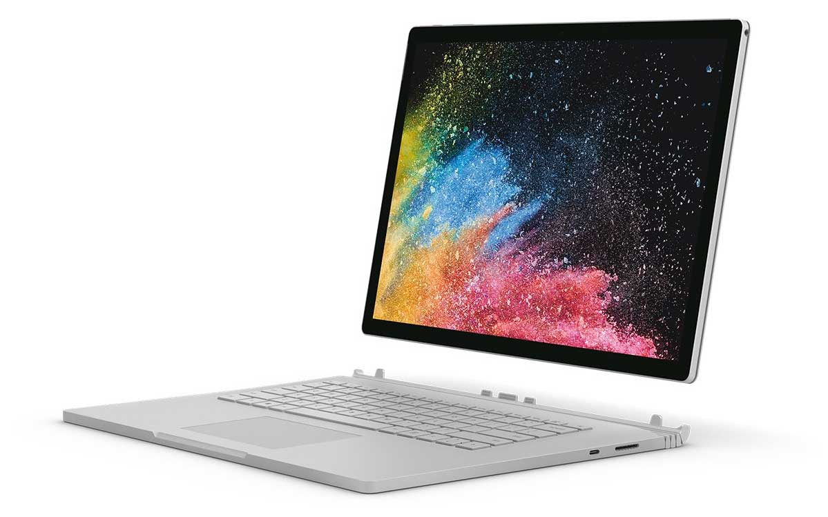 Surface Book 2 has an Intel Core i7 processor running at 4.2 GHz. The screen is 15-inches and has resolution of 3260 x 2160. The laptop as NVIDIA GTX 1060 GPU inside.