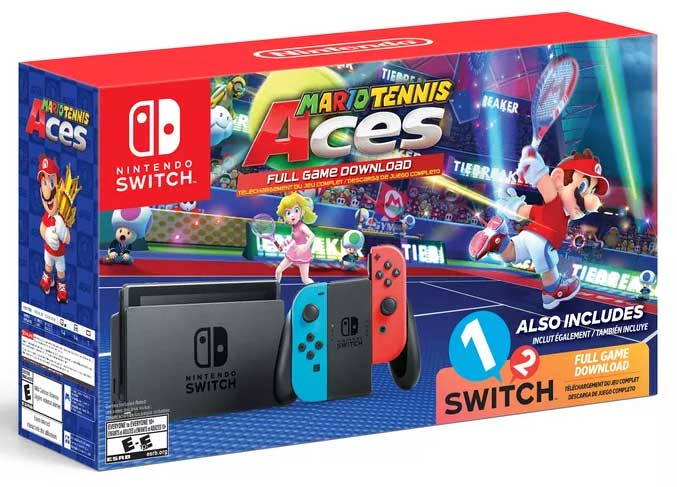 The games include the one advertised in images on the box, Mario Tennis Aces. The other game is a download code for 1-2-Switch reports Polygon. The price makes this bundle a good deal. The Switch is normally $299.99 alone.