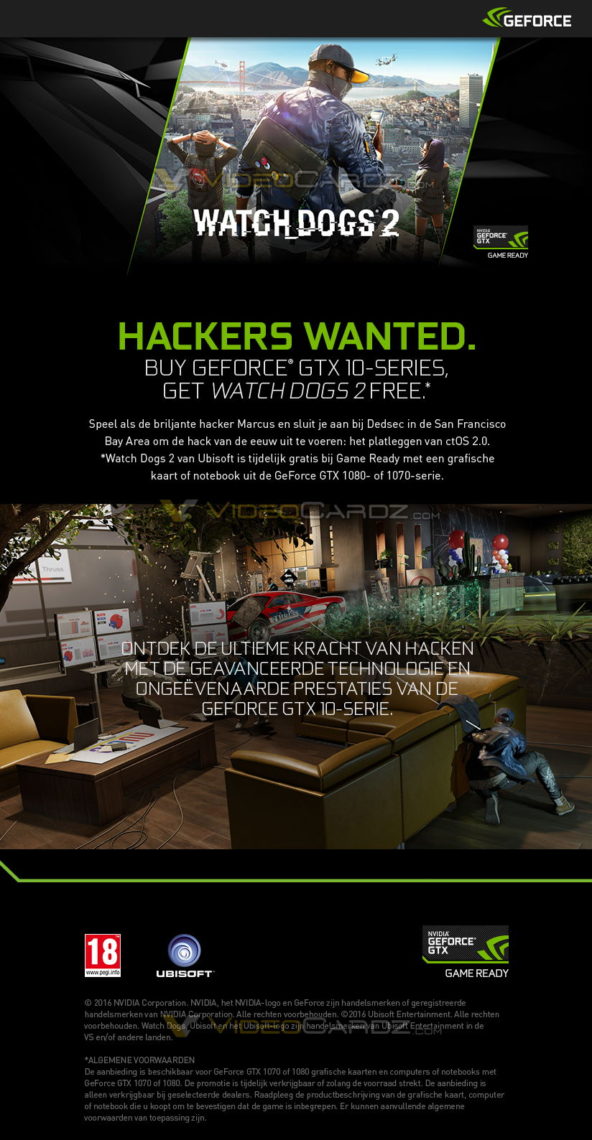 There is no better way to hack your way through Watch Dogs 2 than with an upgraded NVIDIA GeForce GTX 1080/1070 graphics card. Watch Dogs 2 was released on console for PS4 and XB1 on November 15. The promotion is expected to take effect soon as for Watch Dogs 2 is to be released on PC November 29th.